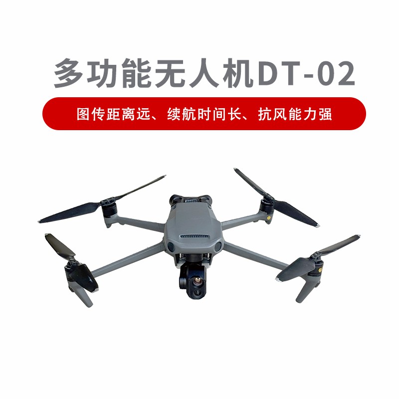 DT-02型无人机图传距离远,续航时间长,抗风能力强。搭载广角机械快门相机与高精度RTK模块,实现高效精准测绘;集成热成像相机与智能AI识别,可穿透浓烟黑夜自动锁定异常热源。整机采用高强度轻量化材质,可折叠装入背包,方便携带,适用于消防搜救,巡检以及夜间场景作业。